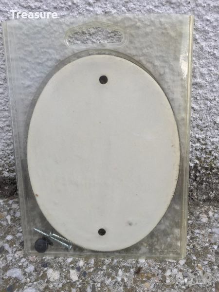 Забележка: Лека пукнатина в долния отвор за закрепяне, на гърба на табелата (последна снимка).