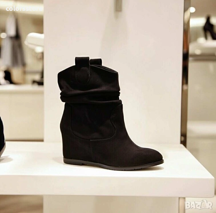 Боти на платформа - черен велур - KBG5 → Обява 37828044