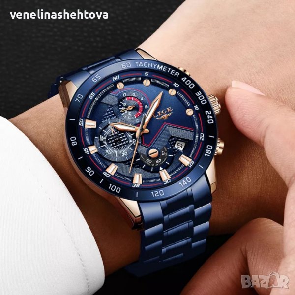 LIGE Мъжки елегантен бизнес часовник+оригинална кутия
