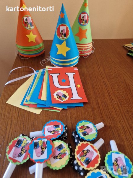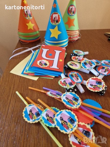 Тематична украса с Барбарони шапки банер надпис свирки → Обява 37832376
