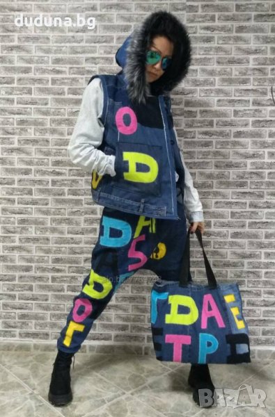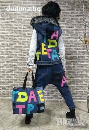 Страхотен дамски сет дънки потури и елек! Предлагаме го с пух и ли без пух! Чанта 75лв./38,35€.