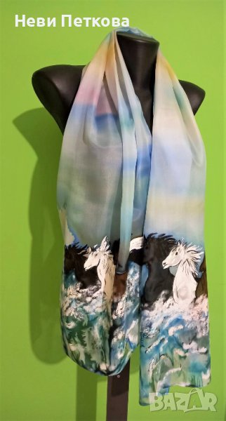 Рисуван копринен шал ВИХРОГОНИ → Обява 37835199