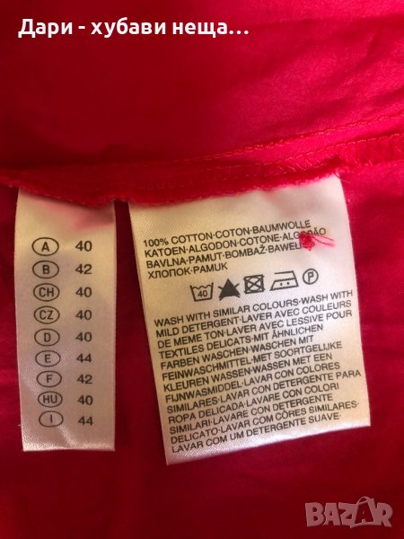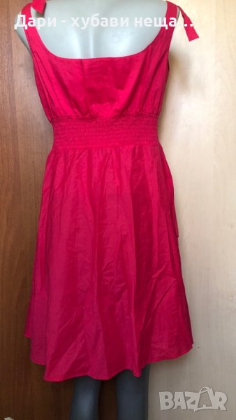 Нова лека памучна рокля в тъмно розово.Подходяща е за големите горещини, както и за плаж.Дължината е около коляното.Талията е леко изместена нагоре и е на ластик.