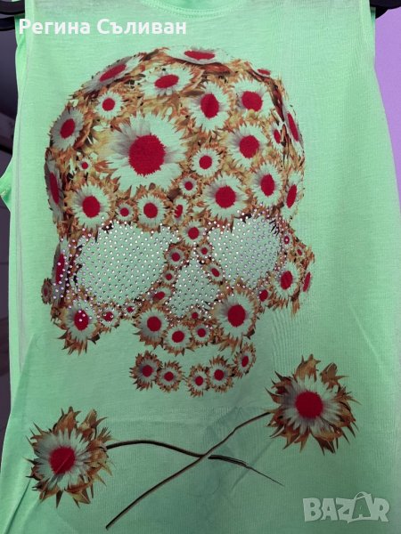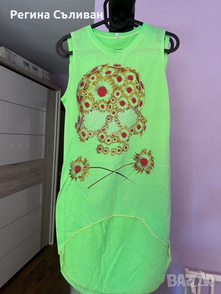 В неоновозелено. С удължен гръб. С красива апликация с камъчета. Налична в размери S и L.