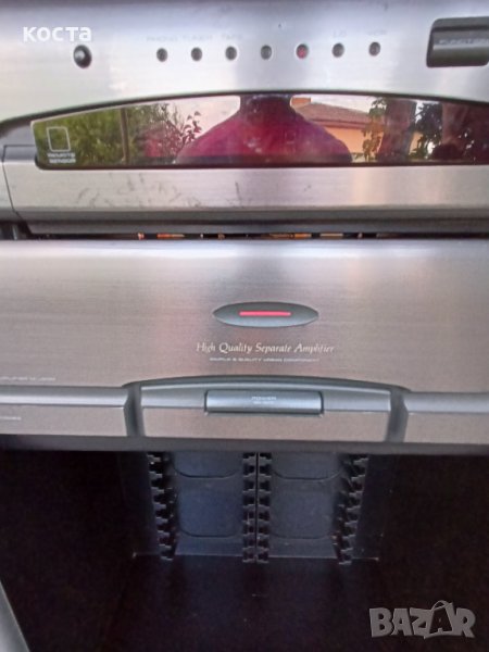 Системата включва крайно стъпало,предусилвател,тунер,еквалайзер,цд плеър,дек ,шкаф и тонколони.Работи перфектно и е с много добър външен вид.Има две забележки, дясното гнездо на дека не се отваря вратичката и едната тонколона е раздута от долния край