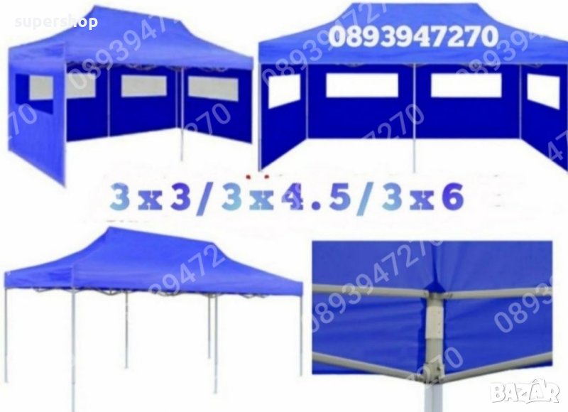 Модел 2х2м - шатра черна конструкция шагрен, подсилена, цена – 129.00лв.Модел 3x3м - шатра бяла конструкция, цена - 120.00лв.