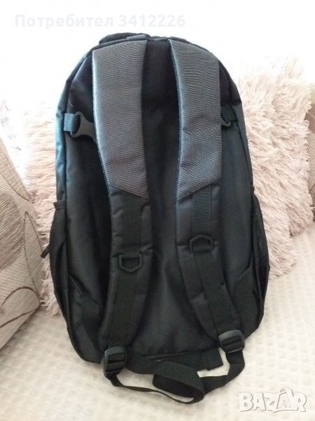 Голяма ученическа раница с подсилени дръжки . Много джобове , отделение за лаптоп , учебници и странични джабове за вода . Цвят черно и сиво с мрежест ефект , комбинация от плат и кожа . Метални ципове .