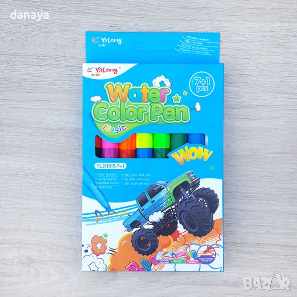 Комплект от 8 броя флумастери за оцветяване и рисуване. Интересното при тези флумастери е, че между тях има 1 бял флумастер и точно в него е магията. При всяко смесване на цветен и бял флумастер, ще може да наблюдавате една неповторима палитра от цветове.