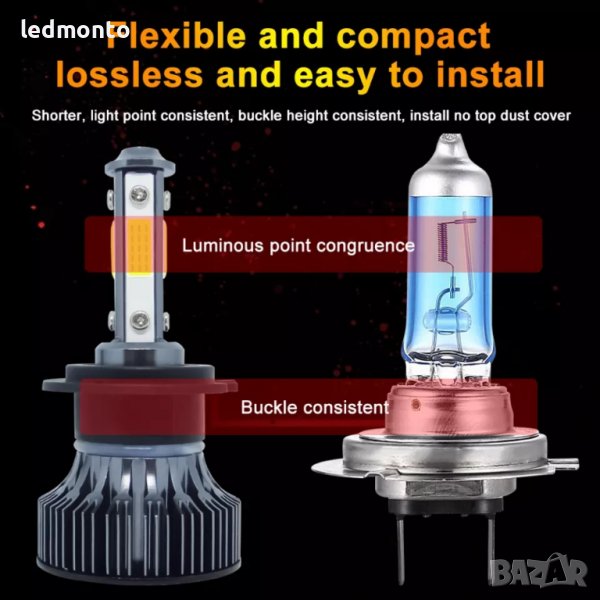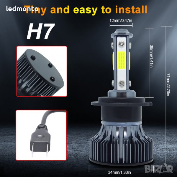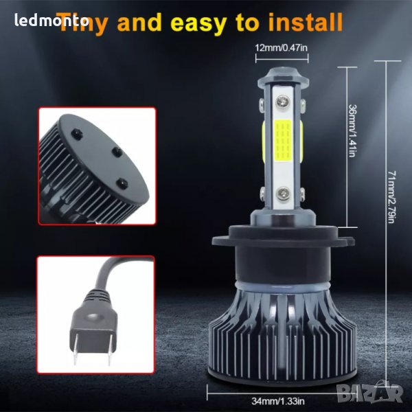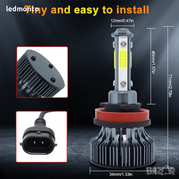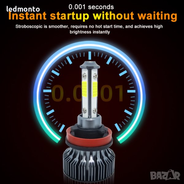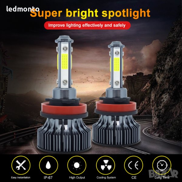 Чип: Специлизиран COB чип от четирите страни за по-концентрирана светлина (автомобилен LED чип)