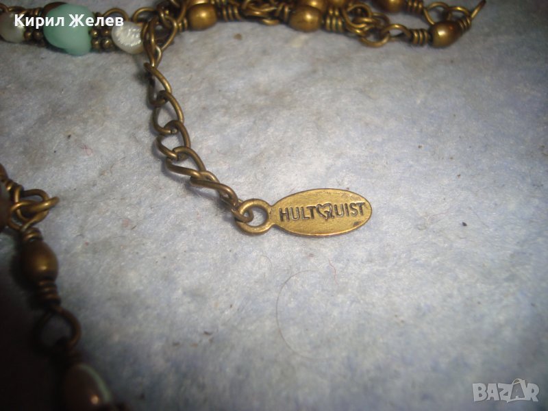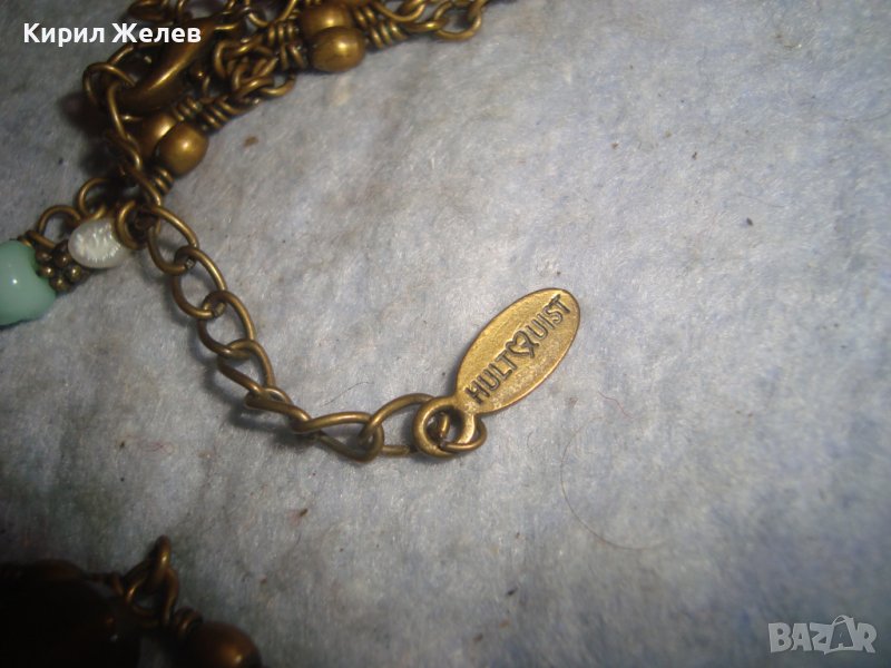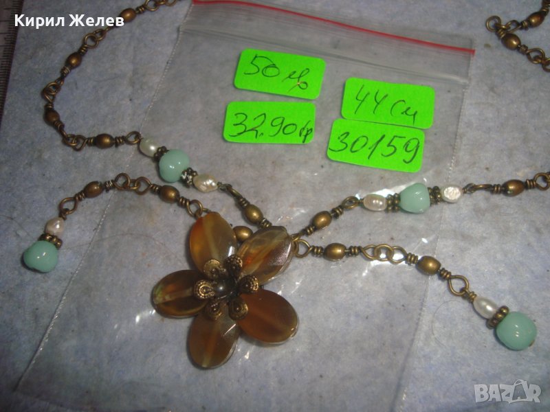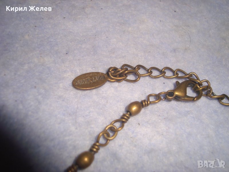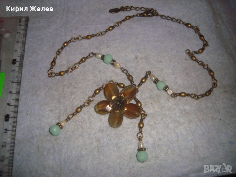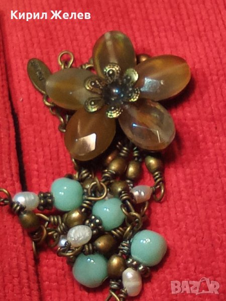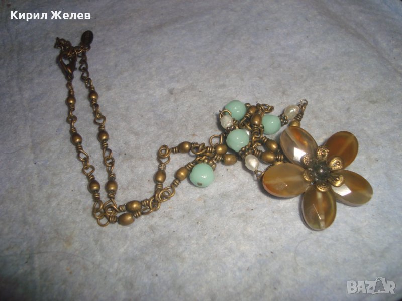 КРАСИВО ФЛОРАЛНО МАРКОВО ВИНТИДЖ АРТ БРОНЗОВО КОЛИЕ ОГЪРЛИЦА с ШЛИФОВАНИ КАМЪНИ 30159