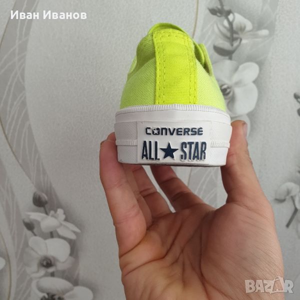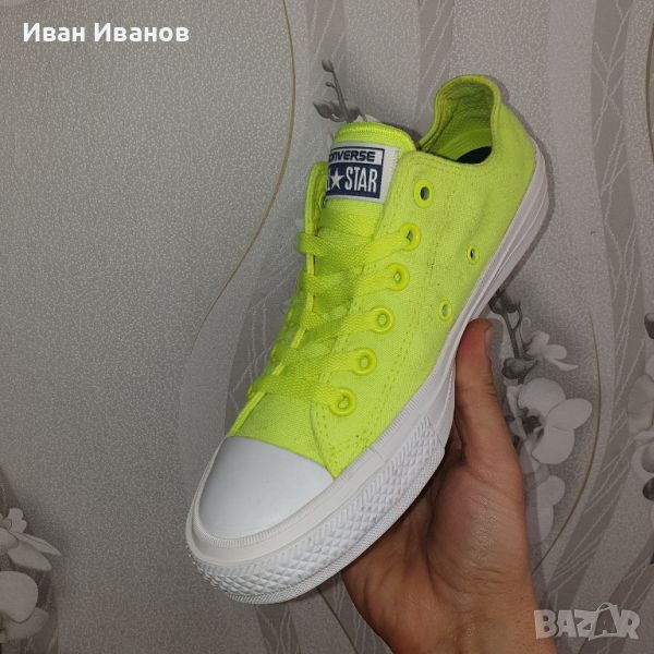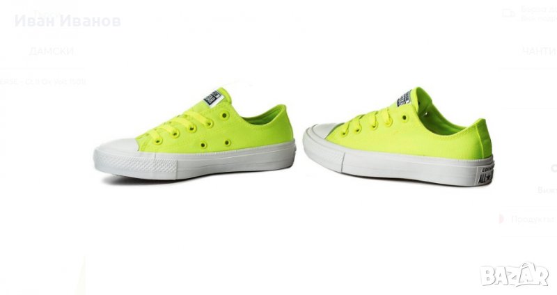 Нови , без кутия Красиви , модерни , с цвят с който няма да останете незабелязани Малко фирми могат да се похвалят с продукт, който е на пазара от почти 100 години. Препратката тук разбира се е към класическите дамски кецове Converse Chuck Taylor. По повод предстоящата кръгла годишнина беше решено да се напише нова глава в историята на тези емблематични маратонки. Converse Chuck Taylor All Star II е подобрена версия на най-известния модел на марката. Направени са промени за повишаване на комфорта при използване. Ниската версия на модела е изработена от здрав текстилен материал, добре познат от предишни издания. Отвътре има перфорирана подплата с мек микровелур. В допълнение към това откриваме подвижна вложка Lunarlon, осигуряваща най-високо ниво на амортизация. По-високата от преди подметка е изработена от същата гъвкава и устойчива на износване гума. На тока има релефно лого на марката. Всеки чифт има 2 чифта връзки - в тон и контрастни, които ще ви позволят бързо да промените изображението му. Women Converse All Star е предназначен за любителите на класическите решения в духа на дизайна от старата школа. Тези универсални обувки ще се чувстват страхотно със спортни стилизации, както и с дрехи от полуофициален характер, като им дават малко отпуснатост. Премиерата на нова линия на Converse е в първия ден на март. Те не можеха да бъдат пропуснати в нашия магазин! Изберете нещо от 5-те нови дизайна! Комфорт, патентован с търговската марка Converse. Тези универсални обувки ще се чувстват страхотно със спортни стилизации, както и с дрехи от полуофициален характер, като им дават малко отпуснатост. Премиерата на нова линия на Converse е в първия ден на март. Те не можеха да бъдат пропуснати в нашия магазин! Изберете нещо от 5-те нови дизайна! Комфорт, патентован с търговската марка Converse. Тези универсални обувки ще се чувстват страхотно със спортни стилизации, както и с дрехи от полуофициален характер, като им дават малко отпуснатост. Премиерата на нова линия на Converse е в първия ден на март. Те не можеха да бъдат пропуснати в нашия магазин! Изберете нещо от 5-те нови дизайна! Комфорт, патентован с търговската марка Converse.