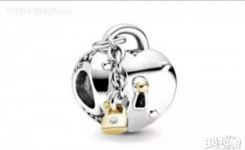 Сребърен елемент сърце с катинар Пандора, Gold/нов → Обява 37852234