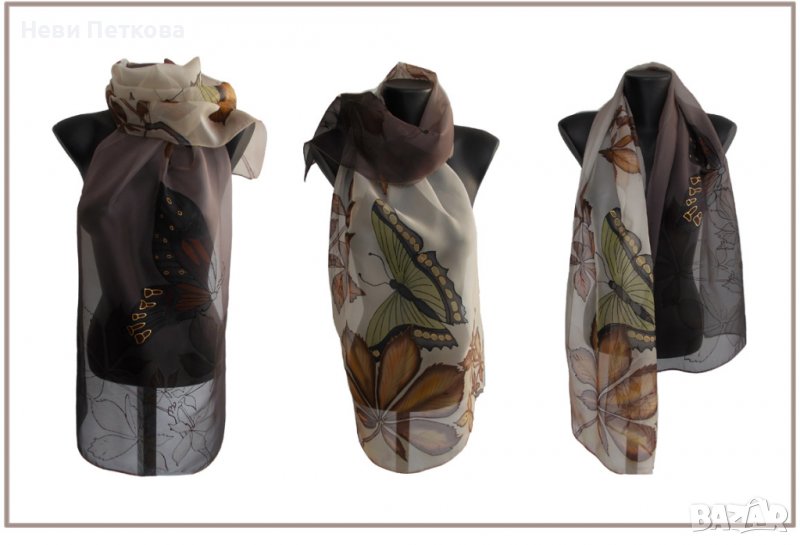 Рисуван копринен шал КЕСТЕНИ И ПЕПЕРУДИ → Обява 37852363