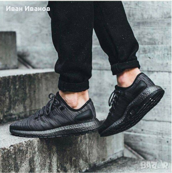 Adidas Pureboost BB6288 Triple Black номер 42,2/3 по етикет. Цена по магазините около 280 лева много малко използван , без следи и забележки като нови В перфектно състояние Леки , меки , и много удобни Това издание се отличава с изцяло черна плетена горна част, съчетана с подходяща черна формована пета и черна междинна подметка Boost по цялата дължина. Завършващият дизайн е по-светъл нюанс на трите ленти, показани отстрани.Погледнете по-отблизо по-долу и вече можете да намерите adidas Pure Boost Triple Black