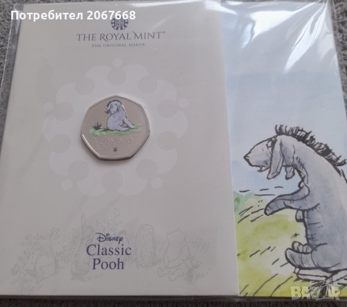 Брилянтна нециркулирала цветна монета Eeyore 2022 UK от 50 пенса