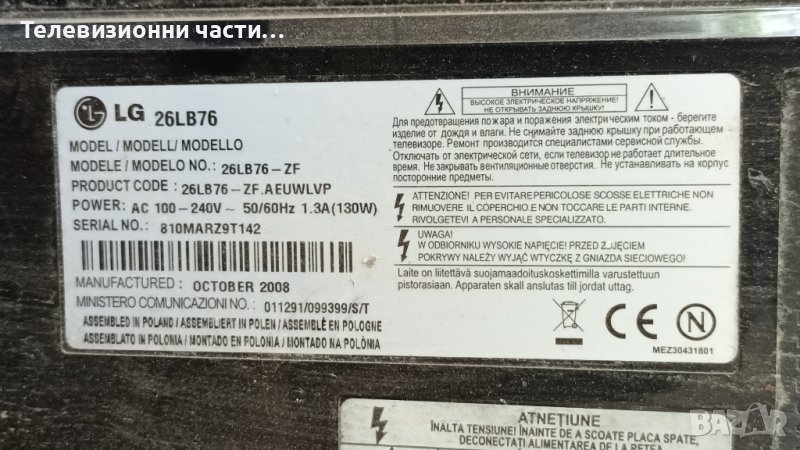 LG 26LB76 с дефектен екран-EAX31845101/13/EAX37632202(0)/07A35-1C/VIT71023.53 REV:2/T260XW03 V.3