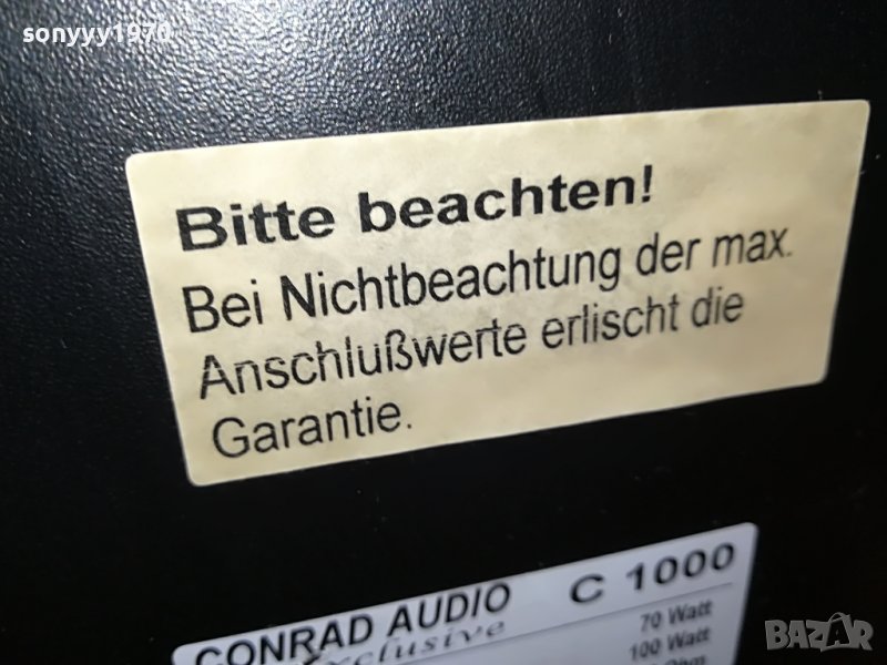 CONRAD AUDIO EXCLUSIVE C1000-2X100W-ВНОС SWISS-41Х28Х23СМ-КАТО МРАМОРНИ МНОГО ТЕЖКИ БЕЗ РЕМОНТИ И С ЖЕСТОК ЗВУК-НОВ ВНОС-ИМАТ РЕШЕТКИ-пращаме със спиди или еконт с преглед и тест след превод на капаро за куриерската услуга поради зачестили некоректни потребители-поръчки само тук в саита! по телефона и със смс не! краини цени! бартери не правиме! ПАРИ НЕ ВРЪЩАМЕ! всеки ден нови неща-още 2-3 наши обяви тук