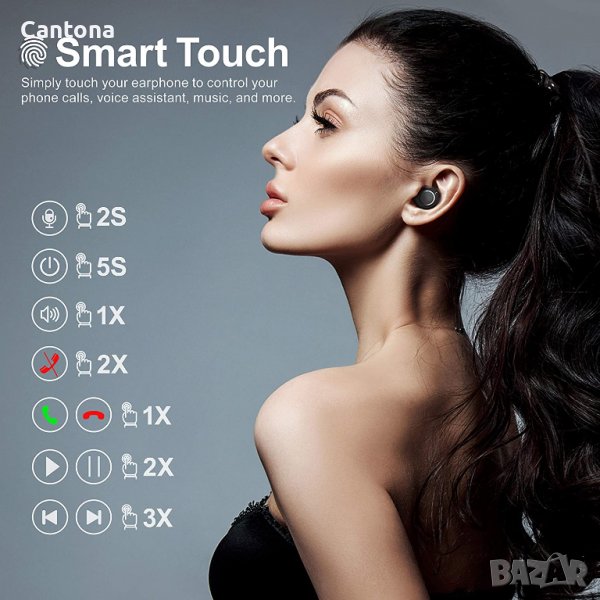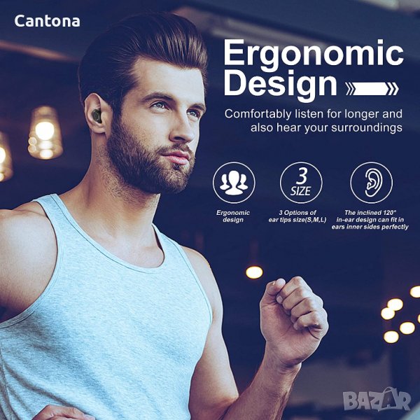 - Работа със сензорен екран: с усъвършенстван интелигентен дизайн на сензорен екран, спортните слушалки са удобни за използване, по-добри от конвенционалната работа с бутони. Просто докоснете безжичната слушалка, можете да възпроизвеждате/поставяте на пауза музика, песен /-, сила на звука /-, да прикачвате/прекратявате повиквания и да активирате Siri. С ергономичен дизайн, слушалките за поставяне в ушите са идеални за вашите уши и не усещат болка, дори когато се носят дълго време.
