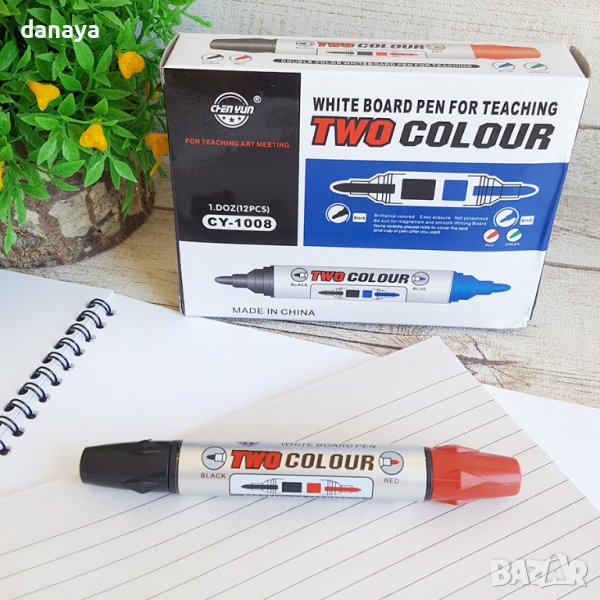 3048 Двустранен маркер за бяла дъска, черен и червен цвят → Обява 37863463