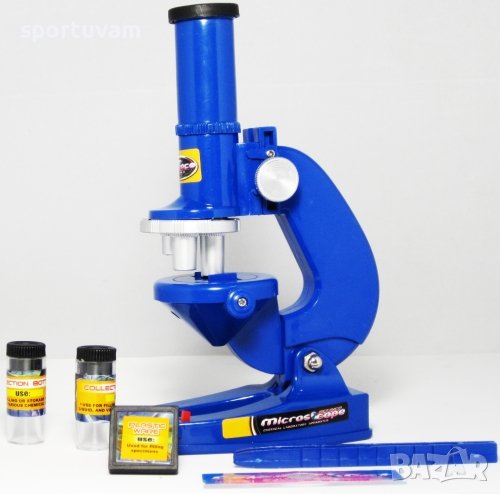 Телескоп с триножник и компас, микроскоп и аксесоари комплект. Основа триножник - 30х30х30 см