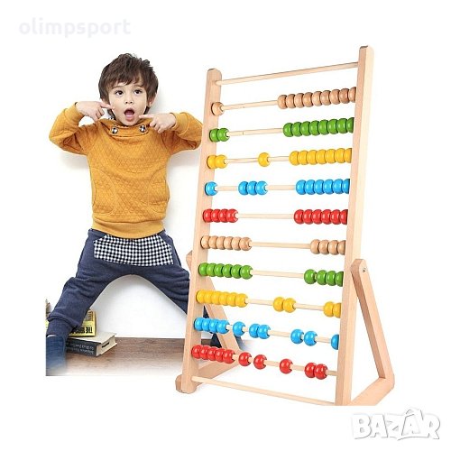 Сметало голямо, 87х51х28 см, Дървено. Разполага със 100 големи цветни топчета с размери 2.5 х Ф3.8 см, групирани по 10 на ред. Необходим помощник за първолаците при усвояване на основните математически действия. При по-малките деца игpитe cъc cмeталoтo подпомагат развитието на фината моторика и научаването на цветовете и броенето. Подходящо за деца над 5 години. Материал – естествена дървесина. Тегло нето – 3.5 кг. Тегло бруто – 4.3 кг. Заемана подова площ – 28х51 см. Размери кутия – 88х48х5.5 см.