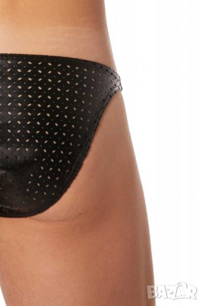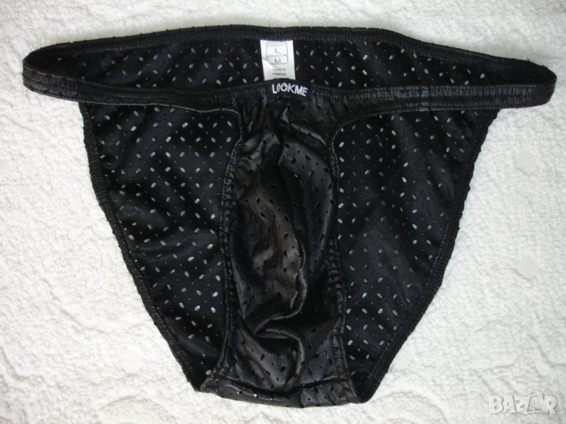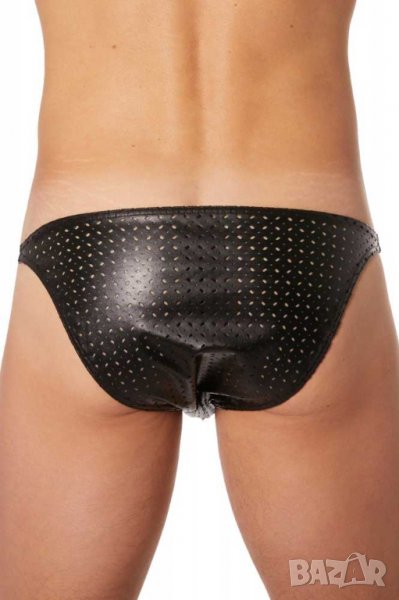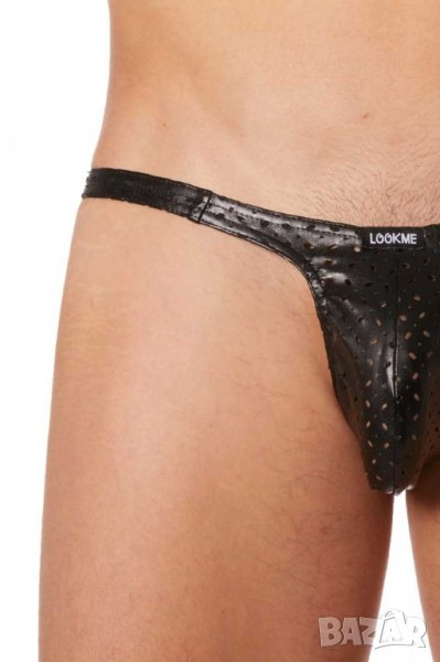 Мъжки еротични слипове марка Lookme, имитация на черна кожа на малки отвори. Размер М, Л. Материя - 100%полиестер. Стоят секси и предизвикателно, събуждат еротични фантазии