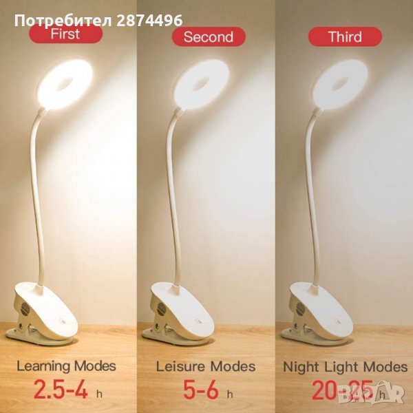 3737 YG-T102 Настолна лампа с щипка и акумулаторна батерия → Обява 37868645