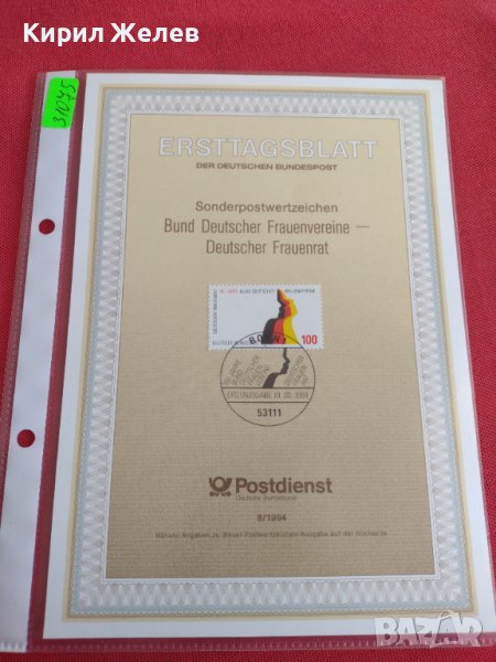Пощенски марки ПЪРВИ ЛИСТ ПОЩА ГЕРМАНИЯ ПЕРФЕКТНО СЪСТОЯНИЕ РЯДКА ЗА КОЛЕКЦИОНЕРИ 31075 → Обява 37869803