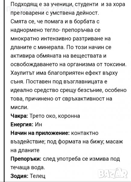 Гривни от естествени камъни които ви помагат с енергията която излъчват -гривни за късмет.любов .благополучие и крепко здраве .1-Първа гривна е изработена от естесвен камък хаулит-камъка на успокоението-камъните са 10мм.-размер на гривната в неразтеглено положение -17.5см.-цена 18 лв. 2-Втората е с нефрит .седеф в комбинация с изкуствени камъчета-10мм.камъни и среден размер на гривната-18см.-Нефритът създава у своя притежател душевна чистота,искреност.Способства за вярност и дълголетие.милост и мъдрост,за добро здраве и въздържание.Нефритът е камък на добрите дела,чистота,спокойствие,любов-той е прекрасен балансиращ камък-пречиства всички органи от токсини.Камъкът привлича добър късмет и приятелство,помага плодовитостта и раждането.Спомага за професионални успехи,намиране на работа,семейно щастие и здраве.Той е и детски камък-талисман -пази от болести и опаснасти.Камъните от Седеф са символ на семейството като помага за укрепване на брачните устои,помага на този който го носи към взаиморазбирателство.Той поддържа и материалното благополучие в семейството-подходящ тарисман за хората от зодия Риби.Телец.Рак.Водолей.Везни.Дева -цена 18 лв.