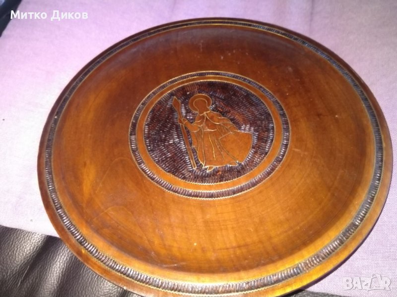 Дървена чиния за стена религиозна тематика-метални нишки Фи-25см-в много добро състояние-изпращам по еконт-по спиди