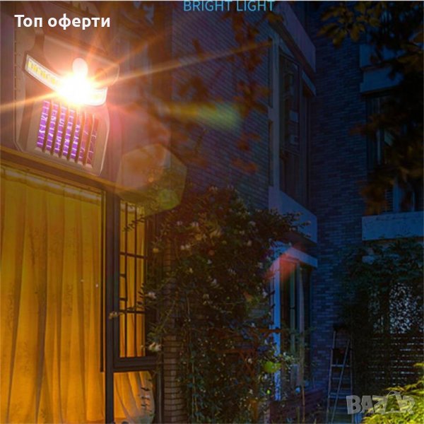 соларна лампа против комари ще можете да се наслаждавате на дългите топли вечери в компанията на своите приятели и семейство. Тя е иновативна по рода си, защото съчетава две модерни технологии - UV лъчи против комари в комбинация със соларно захранване. Лампата има висока ефективност с изключително ниска консумация на енергия. Мощната 18650 литиева батерия може да ви осигури до 8 часа работа. Соларната лампа против комари разполага със сертификат за водоустойчивост IP65, което я прави устойчива на влага и дъждове, а освен това има и голям радиус на обхвата - до 2-3 метра.