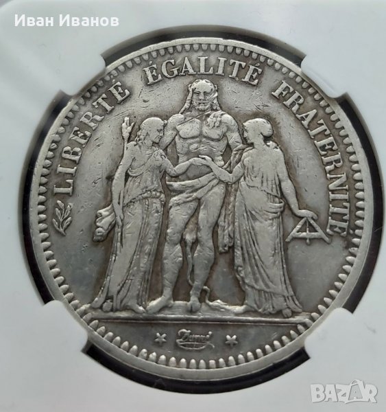 Сребърна монета 5 франка , емисия 1849 , Период Втора република , Тема Херкулес.