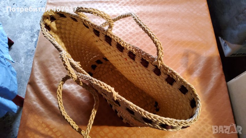 Голяма плетена чанта - тип "кошница". Чантата е с 1 отвор; плоско дъно, без ципове. Снимки 1 и 2
