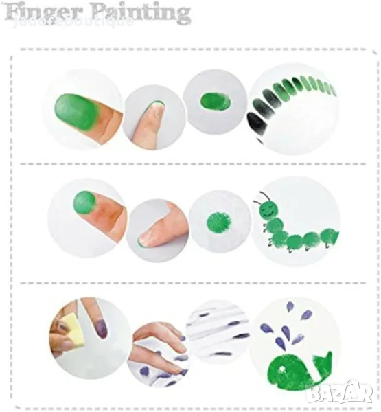 Нетоксични, подходящи за рисуване с пръсти или декорация със силиконови печати.