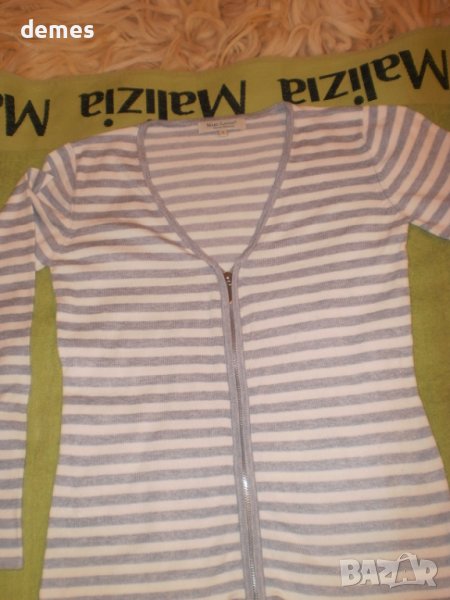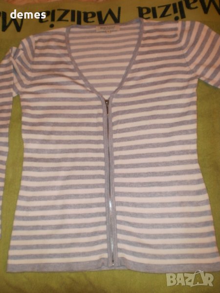 Машинно плетена блуза сиво и бяло с цип.