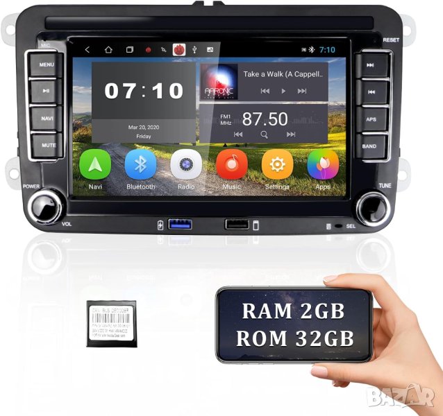 2GB+64GB цена 299.90лв, 4-ядрен процесор, Android Auto, CarPlay, Wi-Fi, RDS, AHD камера