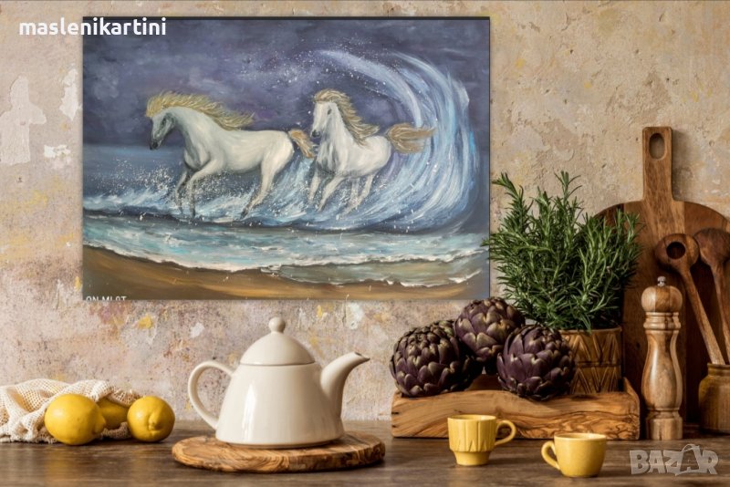 Белите коне и морето маслена картина → Обява 37891579