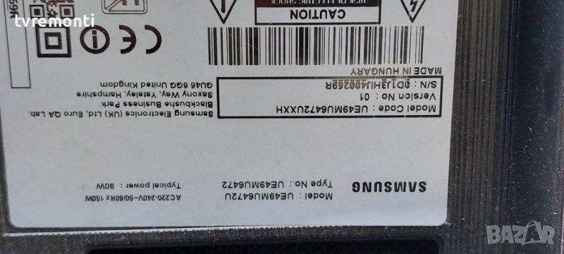 POWER BOARD,BN44-00876A, L55E6_KHS for SAMSUNG UE-49KU6472 Борда е гарантирано работещ Демонтиран от телевизор SAMSUNG модел UE-49KU6472 със счупен дисплей CY-KK049HGEV4H тествана от нашия техник