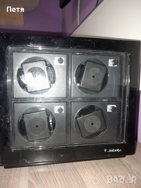 Продавам подвижна стойка за часовници JEBELY / кутия за навиване на автоматични часовници JEBELY. Кутия за самонавиващи се часовници JEBELY . Watch winder JEBELY. Watch winder 4 Watches Box Display JEBELY. Подвижна стойка за четири броя часовници. Няма нищо общо с китайските предложения на пазара. Класическа и стилно изглеждаща дървена кутия, която е в много добро визуално състояние. Минимални козметични забележки по корпуса, които се виждат на снимките. Получени при съхранението. Кутията вече е опакована с меко фолио. Кутията е в отлично техническо състояние. Няма налична книжка, но четирите програми/режима на въртене са наблюдавани в рамките на 24 часа, всяка. Към кутията върви описанието на програмите.