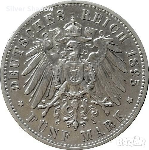 Монета Вюртемберг 5 Марки 1895-F Вилхелм II, снимка 1 - Нумизматика и бонистика - 37898702 Монета Вюртемберг 5 Марки 1895-F Вилхелм II, снимка 2 - Нумизматика и бонистика - 37898702 1/2