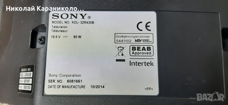 Продавам тв. SONY KDL-32R430B за части по причина-дефектирала матрица/LC320DXJ/SF/A9/.Редовни съответно: