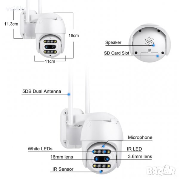 Wifi камерата e водоустойчива и е подходяща за външни условия, може да се настрой и монтира за няколко минути,