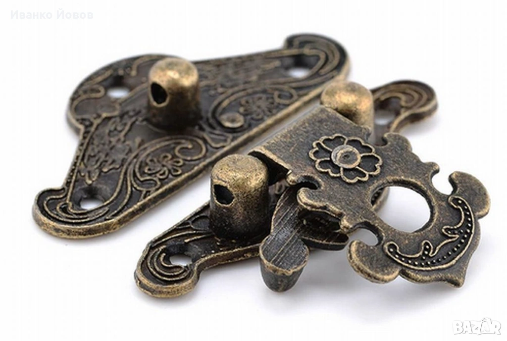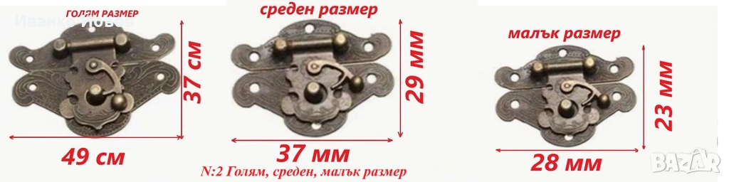 Метална закопчалка, N: 2, 3 размера: голям 49х37 мм, среден 37 х 29 мм, малък 28 х 23 мм, бронзова, катарама за дървена кутия, табли,