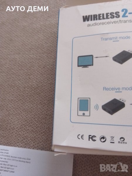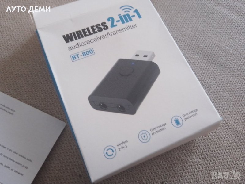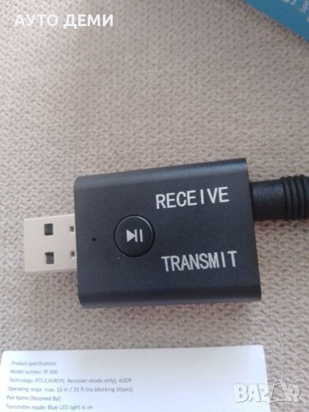 Продавам нови 2 в 1 Bluetooth 5.0 версия адаптер който е приемник и предавател , с отделен вход за AUX вход или IN вход и изход за слушалки или OUT за свързване към аудио и видео техника , като авто плеъри , усилватели , декове , аудио уредби , телевизори и т.н.