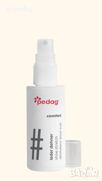 - Допълнително се предлага спрей за разширяване на обувки, немски 75 мл, марка Pedag.Цена 9,20 евро/ 18 лв./бр. Напръскайте със спрея проблемните зони от вътрешната страна на кожената обувка, след което поставете разширителя.
