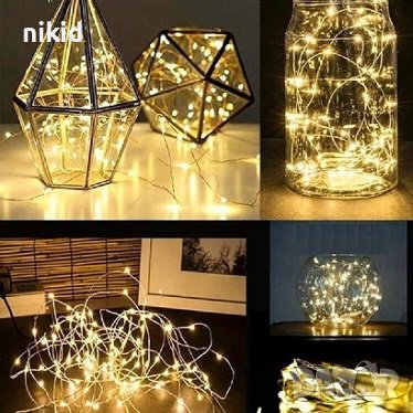10 М Кабел с лед светлинки светлини лампички на батерии Коледни и др декорация → Обява 37910022