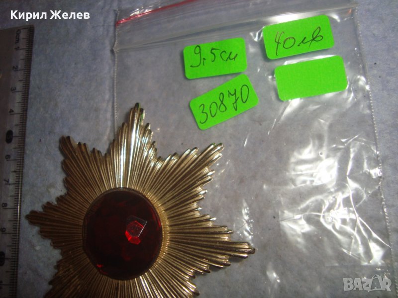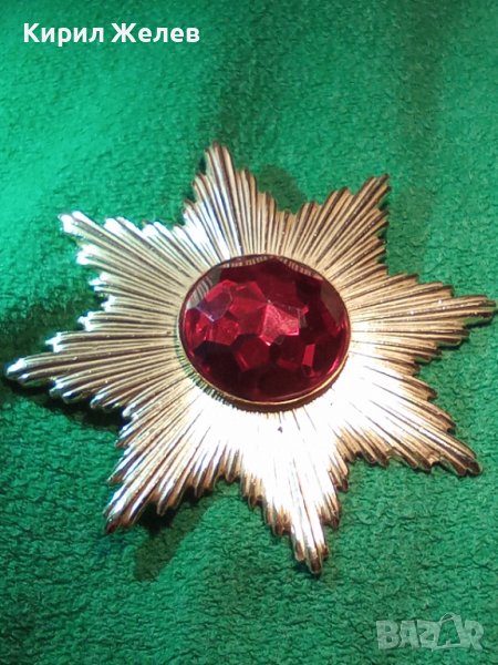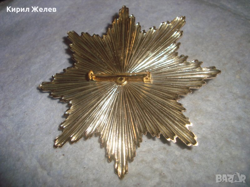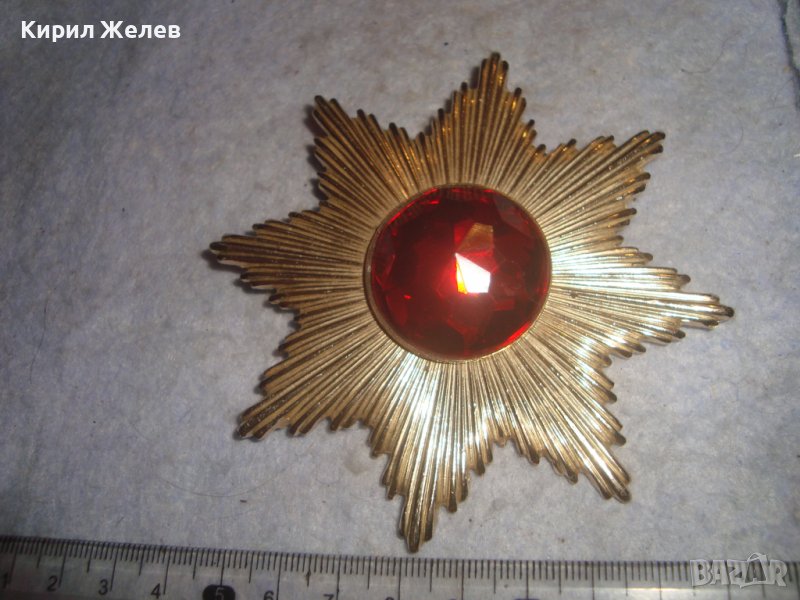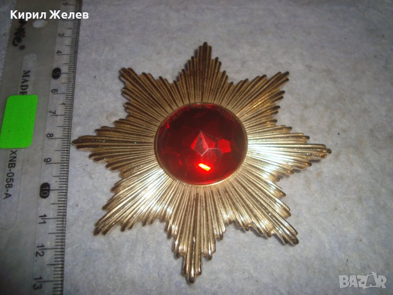 ОГРОМНА РЕТРО ВИНТИДЖ ПОЗЛАТЕНА СТАРА БРОШКА ЗНАЧКА с БЛЕСТЯЩ ФАСЕТИРАН ЦВЕТЕН КРИСТАЛ 30870