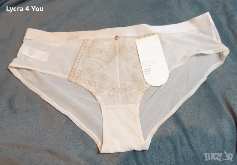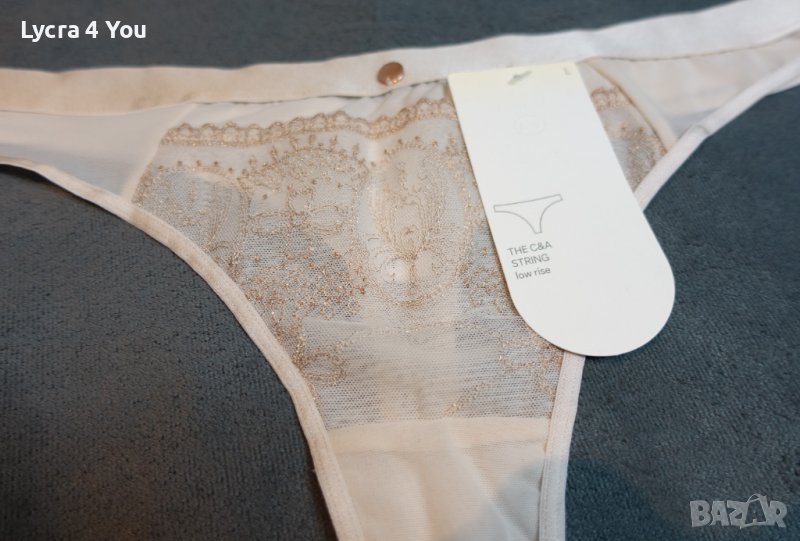 Нови бикина и прашка на C&A Lingerie в страхотен бежов цвят с красиви златисти бродерии отпред. Моделите са от тюл с плосък външен ластик на талията и памучно парче. Изключително красиви и качествено изработени.