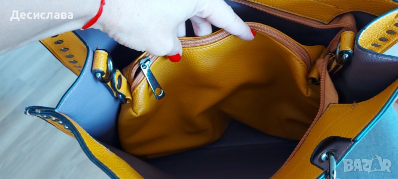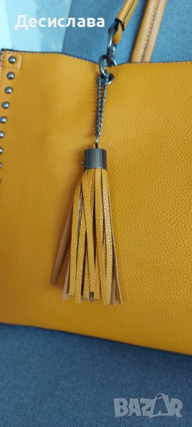 Дамска чанта в цвят горчица с капси и аксесоар → Обява 37916257
