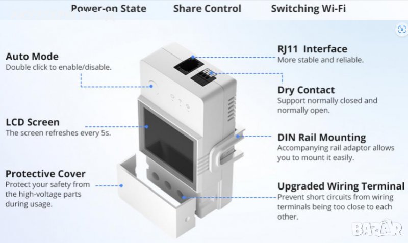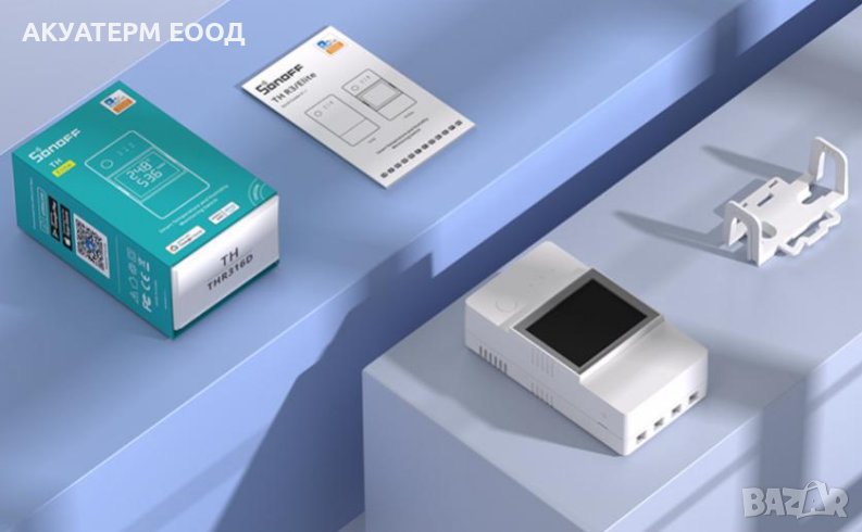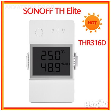 - SONOFF TH Elite е интелигентен WiFi стаен термостат за наблюдение на температурата и влажността, с LCD екран, който